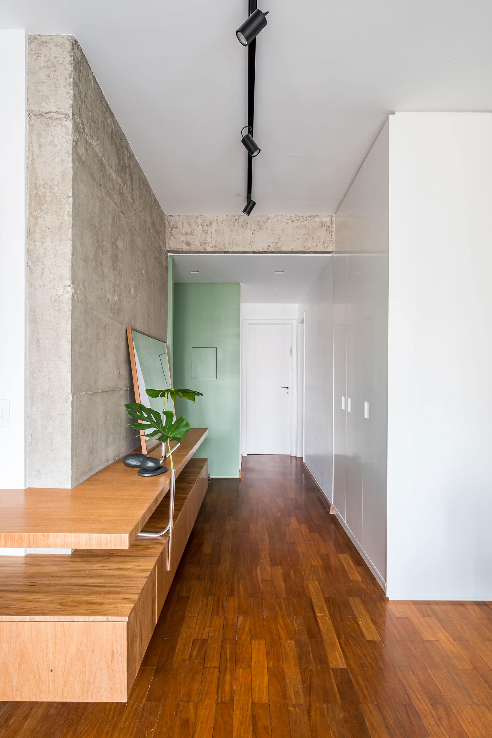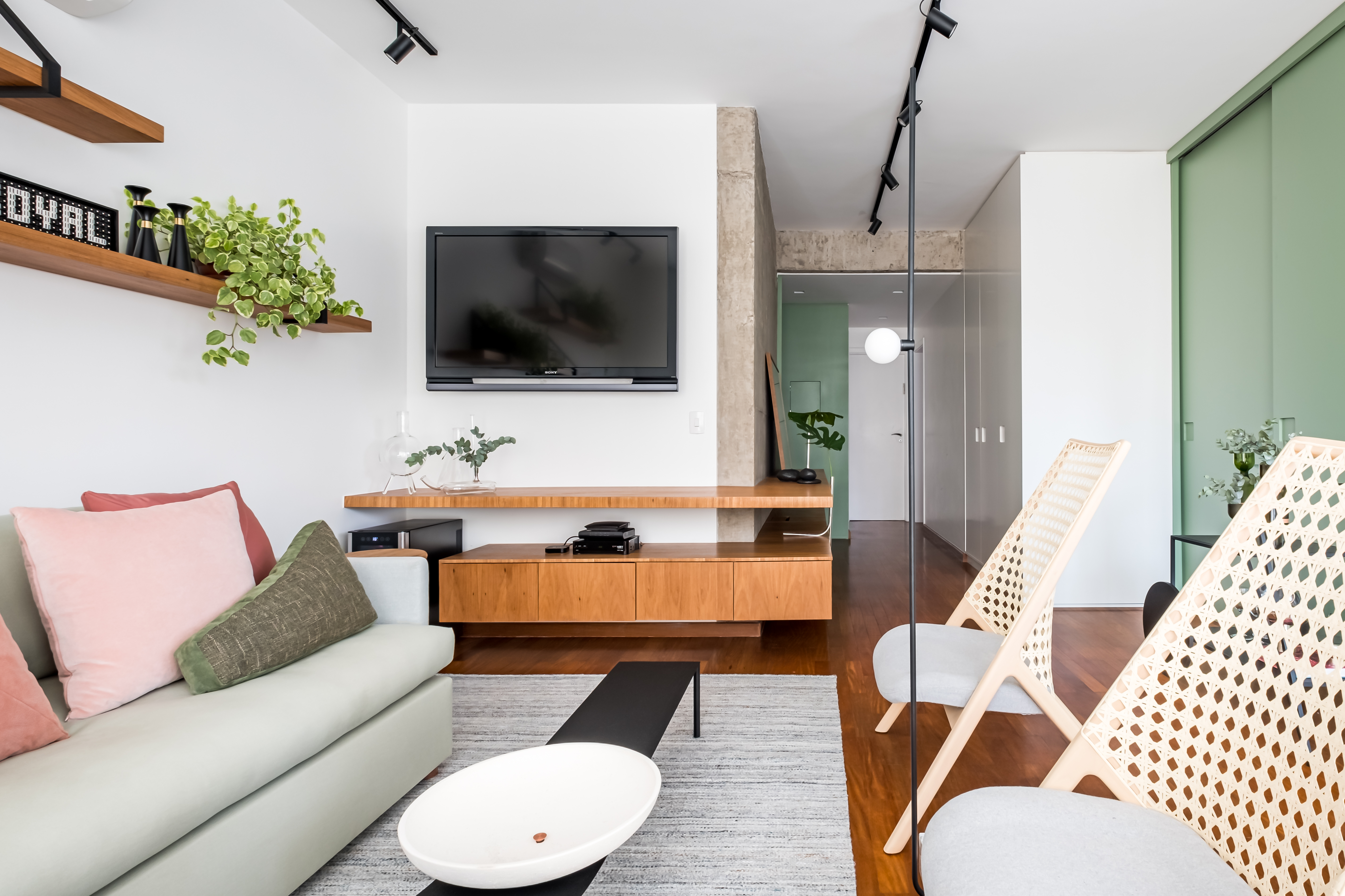 A chegada de um bebê à família é algo mais que especial. E, claro, cheio de expectativas e planos. A reforma do apartamento de 90 m², em São Paulo, proposta pelo teve exatamente esse mote. Além da repaginação do quarto de hóspedes para receber a nova integrante, a ampliação da área social para receber as pessoas com mais aconchego era também um desejo do jovem casal paulistano de cerca de 30 anos. O grande desafio, porém, foi reformular o imóvel em pouco tempo (a proprietária já estava com cinco meses de gestação). Logo, a arquitetura propôs uma unidade de linguagem, com o projeto de interiores que destaca elementos do estilo industrial, mas com o aconchego de móveis e objetos de designers brasileiros.